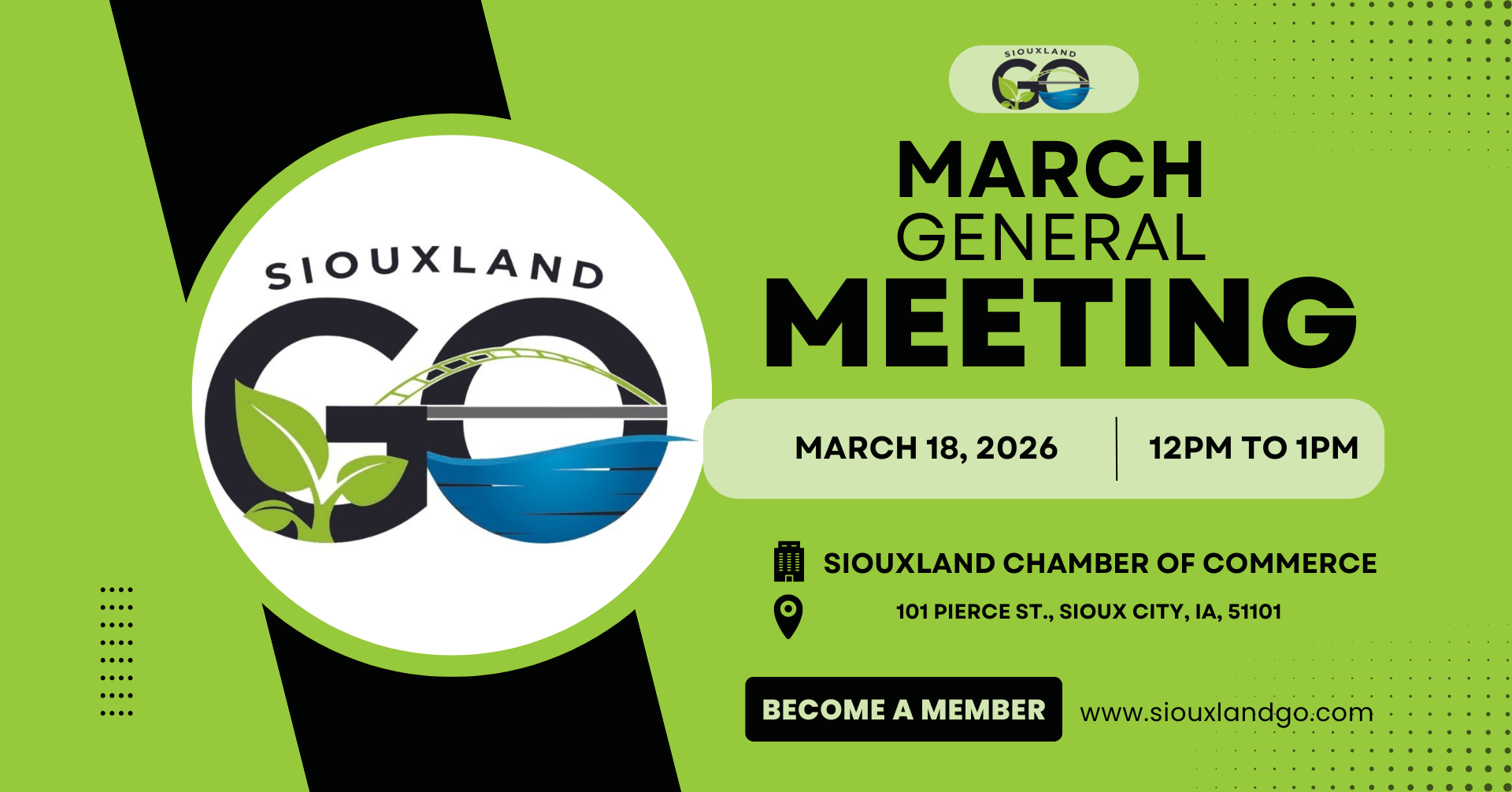 Join us for this month's General Meeting where Siouxland GO members will get to hear what programming the organization has coming up, as well as hear from professional development and community engagement speakers.